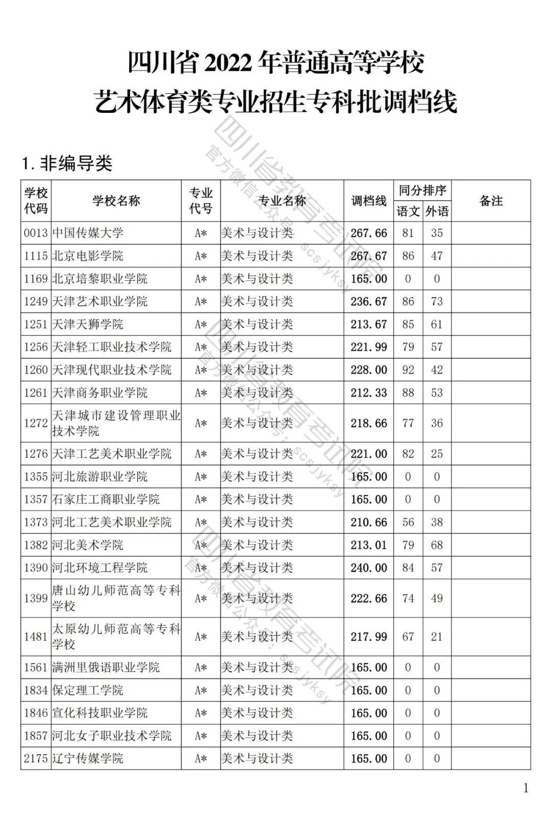 四川省2022年普通高等學(xué)校藝術(shù)體育類??婆延?月5日投檔錄取。為方便廣大考生和家長及時(shí)了解錄取信息,省教育考試院按非編導(dǎo)類和編導(dǎo)類發(fā)布了藝體類分校、分專業(yè)類調(diào)檔線。