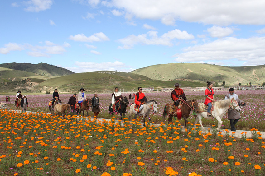 2017年開始,理塘縣把旅游融入生態(tài)修復(fù)中,實施旅游扶貧新村建設(shè)項目,加快基礎(chǔ)設(shè)施建設(shè),打造特色旅游產(chǎn)業(yè),將漢戈村800畝沙化地新建成鮮花帶,配套生態(tài)旅游停車場、花村旅客接待中心、生態(tài)旅游廁所等服務(wù)設(shè)施,開展村容村貌整治工作,補充“古道驛站,牧民天堂”牧區(qū)生活體驗區(qū)、鍋莊廣場、特色帳篷酒店等旅游項目。
