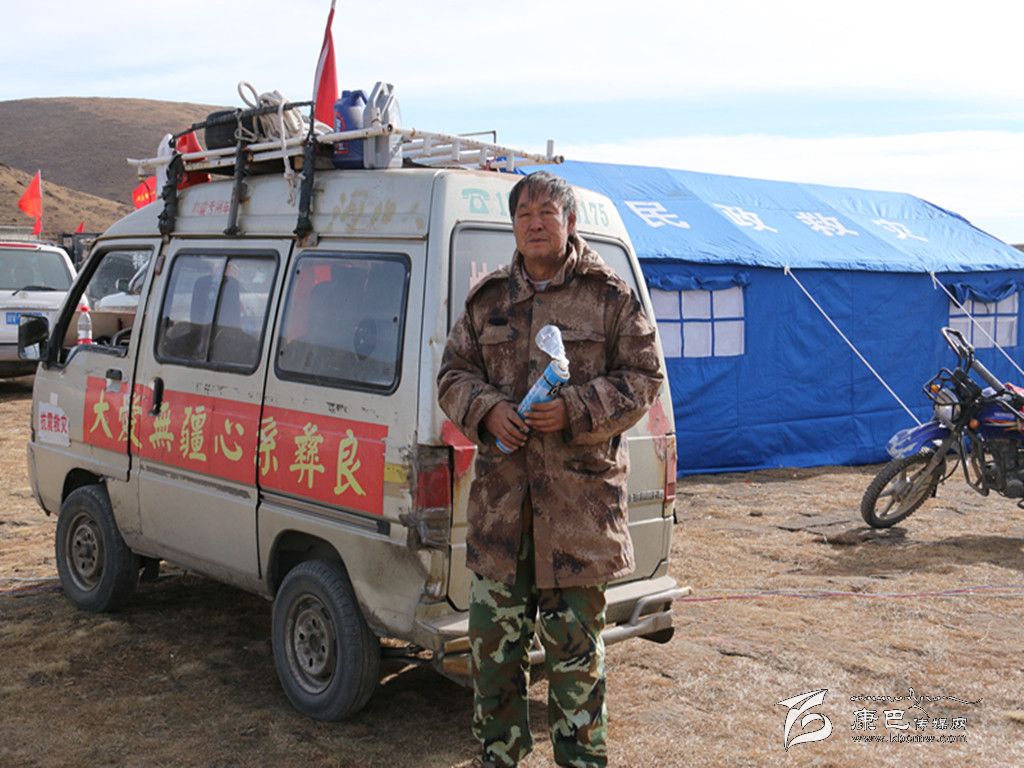 李英俊用58小時(shí)的風(fēng)雨兼程,在經(jīng)歷了兩次汽車(chē)拋錨以后,終于在25日下午抵達(dá)了木雅祖慶小學(xué)臨時(shí)安置點(diǎn)。