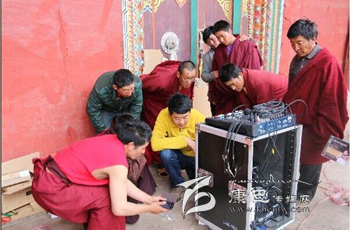 “這是功放機,這是DVD,這里是話筒插口,音量大小就在這里調(diào)節(jié)……”在德格縣溫拖鄉(xiāng)滿金寺的大殿外,僧人白扎正專心記錄著音響調(diào)音臺的使用方法,并用自己的手機全程錄下了整個操作流程。